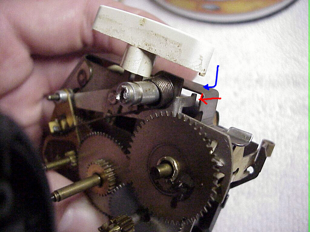 Arm.jpg  blue arrow shows buzzer arm that makes all the noise.